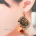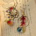 金魚に九尾狐舞い踊り、鬼灯咲く 色変化勿忘草と雫付きの和風ピアス イヤリング★ 和装小物 着物や浴衣 袴 普段使いにも。