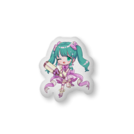 魔法少女あおめろのふわふわクッションです。 大きさは56×36cmです。 裏面にはあおめろのロゴ入り。だきまくらにもおすすめ。