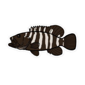 ステッカー - 100 x 100 (mm)日本近海で見られるハタの仲間たちを描いたハタスケッチから「マハタモドキ」のクリアステッカーです。マハタに非常によく似た姿のお魚です! マハタモドキ推しの方はぜひ!
