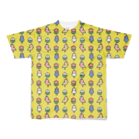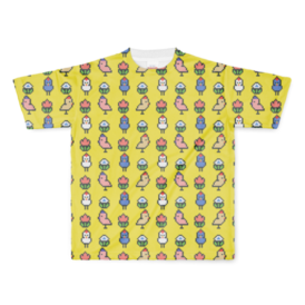 フルグラフィックTシャツ - XL - 両面印刷この商品はpixivFACTORYで作られた商品です。サンプル画像は完成イメージのため、実物と異なる場合があります。 Dot-Chicken-and-Flower Full-Graphic-T-shirt #animal #bird #plant