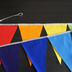 ・ハンドメイドのフラッグガーランドです。 ・色は9色のレインボーカラーです。(パソコンの画面によって写真と実際の色との相違が多少あります。) 2本以上つなげても色のグラデーションが自然になるように配色しています!! ・全長2.9mのコットンリボン(ストライプ柄)に、横約14㎝、縦約22cmの三角形の布(チノクロス)を18枚縫い付けています。 三角形は縦横の長さを黄金比としましたので、誰から見てもバランスがよく、すっきり美しく見えます。 ・リボンの両端は輪状に加工していますので、飾りつけ時に棒や画鋲などに引っ掛けることができます。サイトデコレーションやパーティーなどの飾りつけに役立ちます。 ・在庫より多くご希望の際は、お問合せください。