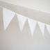 ・ハンドメイドのフラッグガーランドです。 ・色は白色のみです。(パソコンの画面によって写真と実際の色との相違が多少あります。)結婚式や誕生日などで、メッセージを書いて楽しめるように作りました! ・全長2.9mのコットンリボン(ストライプ柄)に、横約15㎝、縦約25cmの三角形の布(チノクロス)を15枚縫い付けています。 三角形は縦横の長さを黄金比としましたので、誰から見てもバランスがよく、すっきり美しく見えます。 ・リボンの両端は輪状に加工していますので、飾りつけ時に棒や画鋲などに引っ掛けることができます。サイトデコレーションやパーティーなどの飾りつけに役立ちます。 ・在庫より多くご希望の際は、お問合せください。