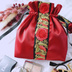 加州清光イメージのトラベル巾着ポーチ♡ 本業洋裁講師のオーナーが一つ一つ手作りしております♪ シンプルですが、持ち運びやすいサイズなのでメイク用、下着、イベントのバッグ、推しのグッズ入れ等にお使い頂けます♪ インドリボンを縦にぐるっと一周縫い付けているのがポイント(๑˃̵ᴗ˂̵)♡ ※インド製を輸入してます! 持ち手のリボンは両面サテン☆ キュッ!っと絞った状態だと約32㎝(片側だけの長さ) 巾着の生地はワインレッドのサテン♪ ※裏地も同様 *※サイズ※* 縦:24.5㎝ 横:27㎝ マチ:8㎝ 持ち手リボン:32㎝×2本(取り外した状態1本90㎝) ※内側にブランドタグ付き ※リボンを直接輸入している為、数に限りがあります。