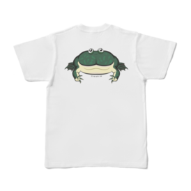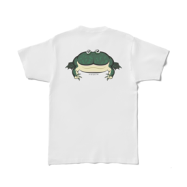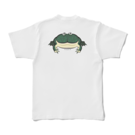 Tシャツ - XL - 白ペットとしても人気のあるおとぼけ顔が特徴の丸っこいバジェットガエルをデフォルメして背中に大きくプリントしました! カエル好きな人や、バジェットガエルが好きな人にお勧めの可愛らしい仕上がりになっています。 別名マルメタピオカガエルという不思議な魅力のある癒やし系の人気のカエルですが、なかなかグッズがないので作りました。 体の半分くらいある大きな口と、上目遣いの目が特徴的な可愛らしいデザインにしました。 カエルグッズは多いですが、バジェットガエルのグッズはあまりないので作ってみました。 この商品はpixivFACTORYで作られた商品です。サンプル画像は完成イメージのため、実物と異なる場合があります。