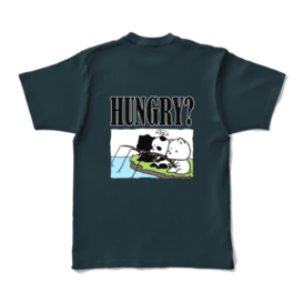- 「HUNGRY?」カラーTシャツ - L - デニム (濃色)(L - 背面 - デニム)2025/10/16