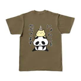 - 「にゃんこをかぶってます」カラーTシャツ - S - オリーブ (濃色)(S - 背面 - オリーブ)2025/10/16
