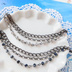 重ねる想いと寂しさ。 2種類のチェーンとキラキラボタンカットガラス。 3連になる様にシンプルなチョーカーに仕立てました。 黒金具には グレージュラスターとヘマタイト。 シンプルだけどちょっとメタリックで太めな印象。 綺麗めカジュアルからゴシックドレスまで幅広くコーデが出来ます。 ロングネックレスと重ね付けもオススメです。 ゴシックやパンキッシュなコーデに合わせてもいいし シンプルなランジェリーとも相性がいいですよ。 男の子ドールに合わせるのもオススメです。 MSD~SD位迄 約9cm+アジャスター 3,5mm幅チェーン 2,5mm幅デザインフィガロチェーン ボタンカット(ガラス):3mm アジャスターの先にも同色の3mmボタンカットガラスビーズを使用。 金具:ブラックカラー(メッキ) ※ネックレス部分のサイズ調整可能です(無償範囲内)。 ボタンカットガラスビーズのカラー変更オーダーも可能です。 金具カラー変更オーダーも可能です(ゴールド・シルバー)。 ご希望の場合はメッセージにてご連絡頂くか、事前にお問い合わせ下さい。 ※受注製作となります。
