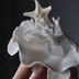 天然のヒレが美しいシャコ貝や珊瑚を使ってジュエリートレーを作りました。 指輪やピアスなどのアクセサリー、小物類を置いておけます。 手のひらサイズなので机の上の置物としても邪魔しません。 優しくひっくり返せばヒレの部分を飾ることもできます。 シーグラスが青いものと白の2種類あるのでお好きな方をお選びください。 ・size Blue:横10cm×7cm White:横10.5cm×7cm ※画像に写っているアクセサリーは使用イメージ図です。 商品には含まれません。 【ハンドメイド品について】 市販品と比べて甘い部分があります。 貝殻のヒレの先に一部欠けている部分があったりと形は様々ですが、天然素材としてお楽しみください。 珊瑚やヒトデ部分はデリケートなため、パーツの端は掴まずに土台となっている貝殻を持って持ち運びをお願いします。
