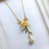 ご覧いただきましてありがとうございます。 樹脂粘土製のパーツとジルコニアチャームを使用したネックレスです。 少し大きめのジルコニアチャームがポイントです。 金木犀とリーフコネクターの色味がゴールドの金具とよく調和して、きれいに仕上げられたと思います。 秋のお出かけのお供にいかがですか? ※注意※ ☆お花のパーツは樹脂粘土でできています。強い力や水濡れに弱いので、充分ご注意くださいませ。 ☆定形外郵便でのお届けのみとなります。 【Size】 チェーン:44~49cm(アジャスター:5cm) ネックレストップ: ・ブーケ:約2cm×1.7cm ・ジルコニアチャーム:9mm×9mm ・リーフコネクター:25mm×15mm ・コネクター:8mm