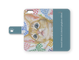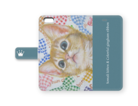 手帳型iPhoneケース - iPhone6 Plusソマリの子猫の周りに色とりどりのギンガムチェックリボンを散りばめた作品です。 この商品はpixivFACTORYで作られた商品です。サンプル画像は完成イメージのため、実物と異なる場合があります。