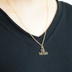 ”TO THE THEATER”ロゴのネックレスです。ロゴは劇場のような建物の形状を意識してデザインしました。 つけ心地がとても軽く、シンプルなデザインながらも揺れると存在感を発揮します。 パーツ部分は真鍮製で金属加工専門の職人さんの手で1つ1つ加工されて製作されております。アジャスター付きで45~51cmまで調節できます。 箱製のパッケージなのでプレゼント用としてもご活用ください。 ■サイズ パーツ/約縦25×横22×厚み1.2mm チェーン/45cm+アジャスター6cm 箱/100×60×23mm ■素材 パーツ/真鍮 チェーン/丹銅にマットゴールドメッキ ■真鍮について 使い続けるとアンティークゴールドのような風合いに徐々に変わっていく金属で、変化を楽むことができます。お手入れすることで元のような状態に戻すことが出来ます。雨天時などは変色しやすいのでご注意ください。 ■お手入れ方法(一例) 全体が浸る程度のお酢を準備し、15分〜30分程度浸します。様子を見ながらたまに取り出し、真鍮の黒っぽくなってる部分を指で優しく触ってみて取れそうならばそのまま指やスポンジなどで優しく擦ります。綺麗になったら水洗いをし、柔らかい布で水気を拭き取ってください。(強く擦ると傷の原因になりますのでご注意ください)変色が強い場合はお酢に浸す時間を5〜10分ずつ延ばし、様子を見ながら調整してください。 こちらのお手入れ方法は当ショップで検証済みの方法で、数ある真鍮のお手入れ方法の一例になります。その他のお手入れ方法はネットでも検索できますのでご自身に合った方法でお手入れしていただければと思います。 【購入時の注意点】 ※撮影時の照明やPC環境により多少色が異なって見える場合がございます。 ※納品書はご希望の方のみに同封させていただいております。ご希望の方は、備考欄に「納品書同封希望」とご記入いただきますようお願いいたします。 ※1点1点丁寧に作るよう心がけておりますが、あくまで手作り品ですので、完全に機械で作った既製品のような仕上がりではございません。手作り品の味としてそこをご理解いただいた上でご購入いただければと思います。