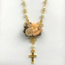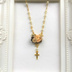 51 くすみイエローのバラと桜のブーケミニロザリオネックレス
