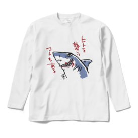 ロングスリーブTシャツ - XL - ホワイトもうコレは運ですかねぇ... ※元のデザインに「背びれ」を足してサメらしさをプラスしました! この商品はpixivFACTORYで作られた商品です。サンプル画像は完成イメージのため、実物と異なる場合があります。