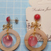 おしゃれな赤い桃のピアスです。 赤い桃には、金粉のような模様がついています。 また、上のピンのところは、一応カスミソウが埋め込まれております。 こちらには、ピアスキャッチもお付けしますので、どちらでもお好きな方をご利用ください。 大きさ 飾りサイズ:約3×3cm ピアス全体の長さ:約5.5cm 金属素材:真鍮、スチール こちらは、ハンドメイド品となりますので、下記注意点があります。 【注意点】 ・ハンドメイドのため、配慮はしておりますが、多少気泡などが入っている場合があります。 ・レジン使用のため、傷など付きにくいですが、環境などによっては、黄ばむ可能性があります。 ・ハンドメイド品のため、多少壊れやすいこともあります。取扱にご注意ください。