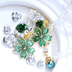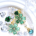桜や薔薇、かすみ草の様な白パールが散りばめられた、初めて恋をした気持ちになれる、心ときめく緑色のイヤーカフイヤリングです。 右耳に付けるイヤリングではガラスの様に透ける緑の桜が揺れて、左耳の桜の下では、キラキラ煌めくガラスストーンとグリーンパールが揺らめきます・:*+. 金具の色:ゴールド 右耳のイヤーカフの大きさ 縦:約3.2センチ 横:約1.5センチ 左耳のイヤーカフのビジューカボション大きさ 縦:約3.5センチ 横:約1.5センチ 揺れるパールの長さ:約2.3センチ パールの大きさ:最大0.8センチ 手作りハンドメイド商品です。耐久性は一般の物より劣ります。優しくお取り扱い下さい。 海外製のパーツも含まれます。バリや細かなキズが含まれている事ご了承ください。 ご購入の際は細かな傷、左右の長さの違い、レジンの気泡はみ出し、色のダマなどお見苦しい点多々ありますでしょうがご了承願います。 金属アレルギー、レジンアレルギー、ステンレスアレルギーの方はお気をつけください。