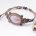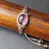 アメジストの紫と シトリンのイエローが 神秘的に混ざり合うアメトリンを ワックスコードで編み上げました。 こちらのアメトリンは 色は少し薄めではありますが 混色がとてもバランス良く 美しい輝きです。 当初、ベージュ風の糸一色で 編み上げる予定でしたが、 イメージ的に深い森のような 静謐な雰囲気が欲しくて 深緑色も混ぜてみました。 主張しすぎないように見えて 編み込みにはアクセントをもたせるよう デザインしました。