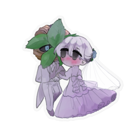 クリア地創作夫婦のウエディングステッカーです サイズは10cm×10cm 白地とクリア地 お好きな方をどうぞ (この商品はpixivFACTORYで作られた商品です。サンプル画像は完成イメージのため、実物と異なる場合があります。)