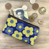 【レトロポップ 花柄】畳縁 ぺたんこ ミニポーチ カードケース 小銭入れ 和風 ブルー 青