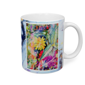 a-554 虹色の蜘蛛の糸 戯れる黄色い花 Rainbow-colored spider thread Playing yellow flowers マグカップ