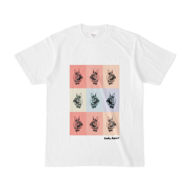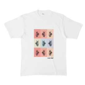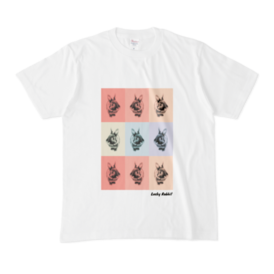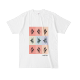 Tシャツ - XL - 白ネザーランド・ドワーフのうさぎさんがいっぱい!パステルカラーの配色が可愛いTシャツです。 この商品のサンプル画像は完成イメージのため、実物と異なる場合があります。