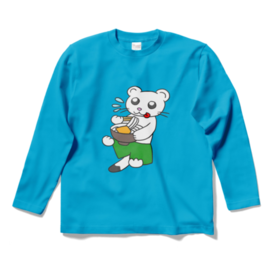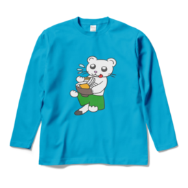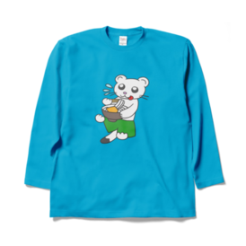 ロングスリーブTシャツ - XL - ターコイズオコジョの「コジョ太」がうどんを食べるだけのTシャツです。