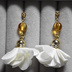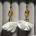 黄金色の鮮やかなガラスビーズにオフホワイトのフラワータッセルを組み合わせ、秋冬色の耳飾りをお仕立ていたしました。 ふわふわとした印象のフラワータッセルの可愛らしい、上品な仕上がりのお品物です。 お色違いもございます! マスタードカラー フラワータッセルのピアス/イヤリング https://yuu3004.booth.pm/items/3307442 黄金色のビーズはガラス製のチェコビーズを使用いたしました。 フラワータッセルは材質不明ですが、上品なツヤ感のある、しっかりとしたハリのある生地です。 ポストピアスはスタッド部分のみステンレス、そのほかパーツは真鍮製のものを使用しております。 ※フックピアス/樹脂フックピアスへの変更は無料で承ります。 ご希望の場合はメッセージでご連絡ください。 ※アレルギー対応ピアスやイヤリングへの変更をご希望の場合には、以下のオプションを同時にご購入ください。 ・サージカルステンレス製金具に変更 https://yuu3004.booth.pm/items/4335135 ・ピアス・イヤリング金具 変更オプション https://yuu3004.booth.pm/items/4858199 長さ(モチーフ部分):約4.5㎝ ※こちらは一点物となります。 minneでも販売中のため、タイミングによっては品切れとなる場合がございますが、予めご了承ください。