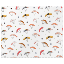 パラシュート寿司柄のメガネ拭きです。 ※この商品はpixivFACTORYで作られた商品です。サンプル画像は完成イメージのため、実物と異なる場合があります。