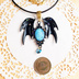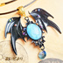 今年もハロウィンの季節がやってきたね。 パーティの招待状と使い魔の紋章(エンブレム)……君はわかってるみたいだね。 相当やりての召喚士なのかな。 だったら君には、特別な装飾具を紹介しよう。 中央のストーンは竜の息吹が詰まった特別性、 上級悪魔ーーデーモンズドラゴンの紋章さ。 召喚の対価は宝石一粒。願い事をする前に必ず準備しておいて。 さもないと……対価を命で払うことになる、かもね。 -- 素材:金属エンブレム、アンティークガラス、革紐、アジャスター、ガラスストーン ペンダントトップサイズ: 6cm × 4.8cm 厚み 約0.5cm ペンダント革紐:首回り45cm +アジャスター5cm — 大きな黒い両翼のペンダントトップです。 中央のストーンはブルーのアンティークガラス。 光にかざすとドラゴンズブレスという青いシラー効果が入っています。 上級悪魔をモチーフとした作りにしてあります。 丸革紐のチョーカーペンダントになります。アジャスターで±5cmの調節ができます。 とても大きなペンダントトップです。サイズ比較画像を必ずご確認ください。 スチームパンク、ファンタジーな小物をお探しの方へ。 — ハンドメイド品ですので少々の色の濃淡、個体差などがあります。 気になる方はトラブル防止の為、注文をお控えください。 また、金属アレルギーの方はご使用になれません。ご注意ください。 配送方法はクリックポストです。