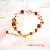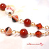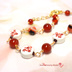 花柄プリントがかわいい陶器ビーズと天然石のブレスレットです。 秋にピッタリな紅葉色の天然石赤瑪瑙も加わり、暖かな雰囲気に。 和の空気を感じさせる花柄ビーズは珍しいディスク型です。 アジャスターの先では小粒な赤瑪瑙が、手の動きに合わせてゆらゆら♪ 落ち着いた赤は、秋冬のお出かけにぴったりです。 ★カーネリアン(赤瑪瑙)★ ・臆病な気持ちを退け、力強さと勇気を与え、目標の達成や成功に導く。 ・向上心を引き出し、集中力を高める。 ・友人や恋人など大切な人との絆をより深く強める、恋愛成就の石。 ・エネルギー不足の人にオススメの石。 ・7月の誕生石。 ・乙女座の守護石(星座石)。 【主な使用ビーズ】 天然石 赤瑪瑙 6mm、4mm 陶器(セラミック)ビーズ ディスク 花柄 赤 9mm スワロフスキー インディアンレッド 5mm チェコ変形 オレンジ×ブラウンマーブル 【サイズ】 約15.5cm+アジャスター2cm ※金属アレルギー、メッキ加工が肌に合わない方はご注意ください。