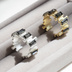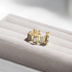 連なる柱を思わせる指輪土台にスワロフスキーを合わせて 幅広で存在感のある、フリーサイズのリングを作りました。 ガラスビーズのサイズは縦7㎜×横3㎜サイズを使用しております。 リングは調整前で11号サイズです。指の大きさに合わせて調節してご使用くださいませ。 (リングを開きすぎると元のサイズに戻しにくくなるのでご注意ください。リングを調整する際は一点に力を入れすぎないようご注意ください。) ※お使いのモニター等により、画像と実物の色が異なる場合がございます。過度な力を加えると破損・変形する恐れがございます。 ----------------------------------- ※発送は、梱包材に包み定形外郵便郵便にてお送りいたします。 郵送中の事故や紛失に関して責任を負うことができません。 保障ありの発送方法をご希望の方は【発送変更】も同時にご注文ください。 ※到着後の返品交換は受け付けておりませんのでご了承ください。気になる点がありましたら、ご購入前にお気軽にお問い合わせくださいませ。 ※ハンドメイド作品であることをご了承の上、ご購入をお願いいたします。 ※お使いのモニター等により、画像と実物の色が異なる場合がございます。過度な力を加えると破損・変形する恐れがございます。 ※使用するパーツ料金の変更等により、予告なく金額を変更する場合もございます。予めご了承くださいませ。 ※この商品はセット販売ではなく、1点のみの販売で指輪土台はマットゴールドのお色味です。