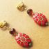 アンティーク風パーツとチェコビーズのイヤリング(レトロフラワー・赤)