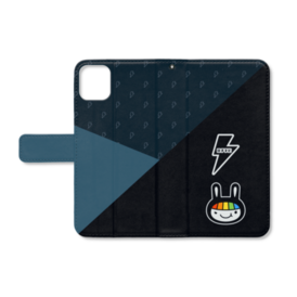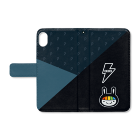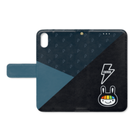 ロクラビ 手帳型スマホケース(iPhone用 - ストラップ穴あり)〈斜 -SHA-/墨〉