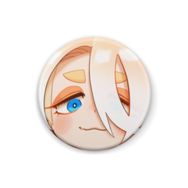 うにちゃんの缶バッジが登場! 写真を撮るときメチャクチャ近づいてきてこうなったけど、これはこれで…となり実装しました。