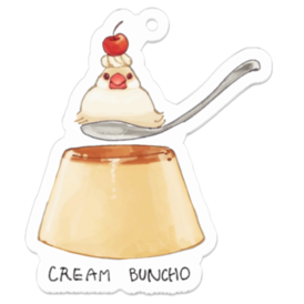 アクリルキーホルダー(コーティング) - 50 x 50 (mm)BUNCHOプリンのアクリルキーホルダーシリーズです。クリーム文鳥はカスタードプリンに乗っています。小さめで付けやすいサイズです。 サンプル画像は完成イメージのため、実物と異なる場合があります。