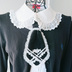 ご覧いただきありがとうございます。 個人制作のミニネクタイとヘッドドレスのセットです。 【ミニネクタイ】 サイズ 縦:最長約22㎝ 幅:最長約11.5㎝ 首周り:約40~約51㎝ 別珍生地にトーションレースとケミカルレース、ラインストーンをあしらったミニネクタイです。 首周りはアジャスター付きのアクリルテープを使用しており、サイズ調整が可能かつ、ワンタッチで装着していただけます。 別珍を使用しておりますが、異素材との相性も良いので幅広いコーデにお役立ていただけるかと思います。 カーディガンやジャケットと合わせたり、ネックレスなどアクセサリーとの重ね付けも楽しんでいただけます。 ※アクリルテープの端処理、バラレースとラインストーンの貼り付けは手芸用ボンドで行っております。 【ヘッドドレス】 サイズ 長さ:約33㎝ 幅:約15㎝ あごリボン:約70㎝ 別珍生地にオフ白のトーションレースとケミカルレースをあしらったヘッドドレスです。 シンプルなレースづかいと細目のサイドリボンで、懐古的な印象の仕上がりです。 サイドリボンはご自身で結んでいただく仕様です。 バラのレースはミニネクタイと同じ光沢のあるレーヨン素材を採用しております。 ネクタイとの相性がとても良いので、是非合わせてトラディショナルなロリータコーデにご活用ください。 ※リボンは当方で染めております。 新品とは質感が異なりますのでご了承ください。 ※素人制作のものとなります。 既製品とは違い、ずれやゆがみ、ほつれなどがある場合がございます。 ご納得いただいたうえでご購入いただけますようお願いいたします。 #ゴスロリ #ロリータ #ロリィタ #ゴシックロリータ #トラディショナルロリータ