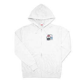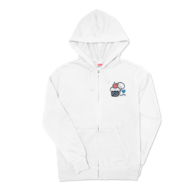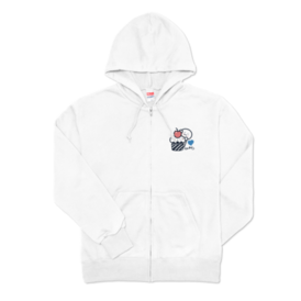 ホワイトジップパーカー 前面印刷 ブルーイラスト