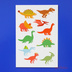 かわいい恐竜のイラストを転写タトゥーシールにしました。 画面上、白地に見える部分は実際には透明になります。 貼り付けたときには、写真とは左右反転します。 恐竜の姿をかわいくデフォルメしたイラスト10種をサイズにバリエーションをつけて収録しました。 以下の恐竜をモチーフにしました。ティラノサウルス、アンキロサウルス、プテラノドン、トリケラトプス、アパトサウルス、プレシオサウルス、ステゴサウルス、スピノサウルス、パラサウロロフス、パキケファロサウルス。 小さめイラストなので、手の甲、足首などにつけるワンポイントタトゥーとしてお楽しみください。 全10点 絵柄のサイズ 長辺33〜45mm。 水で湿らせて貼り付けるだけなので簡単。はがすこともすぐできます。 タトゥーシールとして肌につける以外にも、プラスチックや金属など表面がなめらかなものに貼り付けられます。 【素材】 市販の転写シール 透明タイプ 【サイズ】 幅100×高さ148mm(はがきサイズ) 【購入の際の注意点】 表面の粗いものにはきれいに転写できません。 水を使って転写させるため、紙など水に弱いものには転写できません。 肌に転写した場合は一日を目安にはがしてください。 シートは湿気を吸いやすい性質があるので、なるべく早めにお使いください。