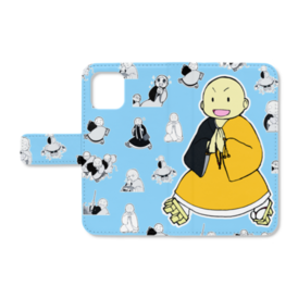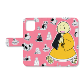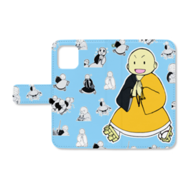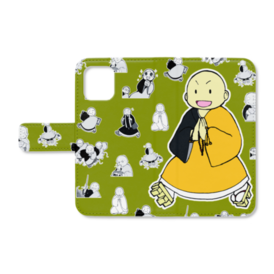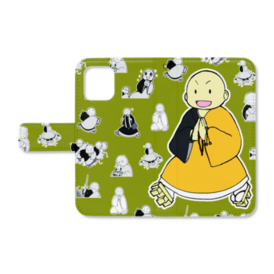 手帳型iPhoneケース - iPhone12 mini - ストラップ穴 あり(黄土色)「本当にきついお坊さんの修行日記」のキャラクタースマホケースです。 ※この商品はpixivFACTORYで作られた商品です。サンプル画像は完成イメージのため、実物と異なる場合があります。