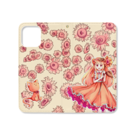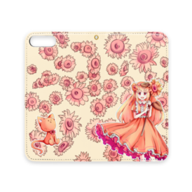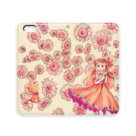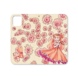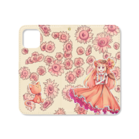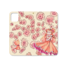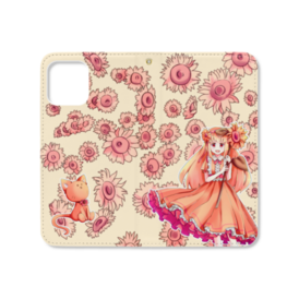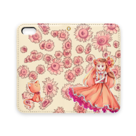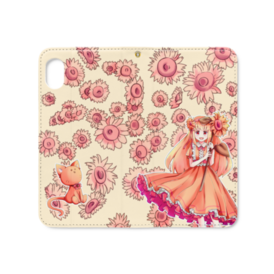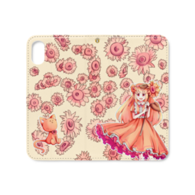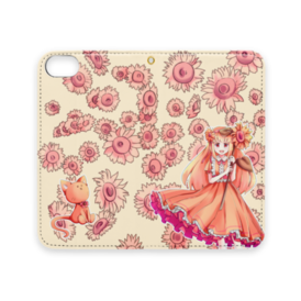 オレンジのヒマワリとうさちゃんと少女がデザインされた手帳型iPhoneスマホカバーです。 この商品はpixivFACTORYで作られた商品です。サンプル画像は完成イメージのため、実物と異なる場合があります。