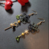 ご覧頂きありがとうございます(^_^) ※こちらお好きな色でお作り致します。コードを2色お選びくださいませ。チェコビーズの色は出品しているもの以外もございますのでお気軽にお問い合わせ下さいませ。(現在手元に17色ございます。) ※ご希望がない場合、画像一枚目のものを発送させて頂きますm(_ _)m 2色のアジアンコード(1mm)で作ったピアスです。 飾り結びをメインにゴールドと同系統のビーズをアシンメトリーに使い繊細かつ華やかに仕上げています。豪華な和装等にももちろん、シンプルなお洋服のアクセントとしてもいかがでしょう? 飾り部分 約7cm(0.5cm程前後します) ※イヤリング(ネジバネ式) ※ノンホールピアス ※樹脂フック ※ステンレスフック ※ポストピアス に無料変更可能です。変更をご希望の方はメッセージ下さいませm(_ _)m ※こちら結びの裏側を乾くと透明になる接着剤で固めております。またハンドメイド作品にさりますのでひとつひとつの差異があります。市販品のような完璧さや耐久性をお求めの方はご購入をお控えください。 飾り結び 組紐 中国結び チャイナ 組紐 和ゴス アジアン 和風 チャイナ風 アジアンノット