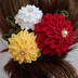 ※着用イメージはマネキンとウイッグを使用しています。 【商品説明】 ・赤、黄、白の花のついたヘアコームです。 ・成人式の飾りはもちろん、着物や浴衣にも合わせることができます。 ・つまみ細工の生地は一越ちりめんを使用しています。 【サイズ】 縦:約7cm 横:約10cm 【発送方法】 当ショップの作品は、すべて「あんしんBOOTHパック」での発送です。 「宅急便コンパクト」に設定しています。 ※日時指定はできません 【注意事項】 ・素人のハンドメイド作品です。丁寧に作ることを心掛けていますが、ヨレ、歪みがある場合がございます。既製品の様に綺麗なものでないとダメな方や、ハンドメイド作品に慣れてない方はご購入をご遠慮ください。 ・お使いのモニターや環境により色の見え方が実物と異なる場合があります。ご了承下さい。 ・金属を使用しておりますので、アレルギーのある方はお気を付けください。 ・つまみ細工は水濡れや、過度な力をくわえたり引っ張ったりすると変形する場合があります。使用・保存の際はお気をつけください。 ・こちらの不備以外での返品や返金の対応はお断りします。 ・自作発言、転売、画像転載等の行為は禁止です。 ・作品の改造は個人の責任の範囲内で行ってください。作品の形状を少しでも変化させた場合、それに伴う一切の責任は持ちません。