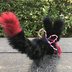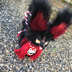 福を告げるという幻獣、黒と紅の色合いから黒紅さんと呼ばれている名前のないお狐様。 全長は尻尾を含まず鼻先からおしりまでおよそ20cm、尻尾は付け根から1番長い毛先までおよそ23cm、高さは四足で立たせておよそ23cm程です。 顔、手足にはラドールプレミックスを使用、骨組みにはビニールコーティングした針金を使用しています。本体はフェイクファーを使用。 前掛けは取り外し可能。しめ縄のブローチを前掛けの紐につけているので、尻尾につけてもかわいくなります。 手足を曲げる時はなるべく骨組み部分を掴み、優しく曲げてあげてください。 中の針金は経年劣化や無理な曲げ方で折れる場合があります。取り扱いにはご注意下さい。 耳は輪っか状に骨組みをいれているので角度を変えたり、形を変えたりできます。 しめ縄は細い針金をまいているのでこちらもニュアンス程度に形を変えられます。その際指に刺さらないようにご注意ください。 アートドール制作が浅いので、拙い部分もあるかと思われます。 基本水濡れはNG、汚れなどがでた箇所によってメンテナンスできる方の購入を推奨します。
