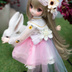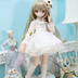 MDDサイズのドレスセットとなります。白とパステルグラデーションがメインの色で、ブラウスにお花の刺しゅうを施したチュール生地で制作しました。 スカートのパステル系のグラデーションになっております。軽やかなイメージなドレスですが、一年季節問わずお使いいただけると思います。