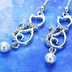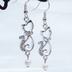 優しい曲線をえがく猫シルエットモチーフのピアス スワロフスキーパール ラインストーン シルバーカラー