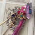 【師走の髪飾り】華×蝶々 ドールサイズの髪飾りを制作いたしました。 ドール向かって右側のウィッグへクリップで留めて頂ける様に制作しております。 お品物は、髪飾りのみです。お人形が写っているお写真は着用例(MDD)となりますので、サイズ感等をご参考ください。(ドール本体や、撮影用に使用している小物類は付属致しませんのでご注意ください) ◆使用素材等◆ 金属、シフォンパーツ、ガラスやタッセル、プラスチック等色々です。難黄変のレジンや、ニカン・丸カン等で各パーツの接着を行っております。 金属・レジンアレルギーの方はご注意ください。 できるだけパーツが外れたりしないよう、ニカンを中心に使用し、マルカン使用部分で、外れる不安がある箇所に関してはレジンにて隙間をふさいでおりますが、華奢なパーツ類も使用しておりますため、優しくお取り扱いいただけますようお願い致します。 金属パーツに関してですが、海外製品も使用しており、なるべく綺麗なものを選んで使用しておりますが、どうしても元々少々のスレや小傷などがあるパーツもございます。お気になされる方はご購入をご遠慮くださいますようお願い致します。 ◆ドール着用時のご注意◆ 必ず、ウィッグの上からのご使用をお願い致します。金属パーツを使用しています為、お顔にパーツが当たらない様装着してあげて下さい。 色移りは湿度や条件によって変わってきますので、長時間の装着したまま・・は推奨できません。様子をご覧いただきご使用をお願い致します。 (念の為、特にタッセル部分はお顔など本体に直接触れない様ににご使用下さい) 大変すみませんが、色移りや、パーツこすりでのメイクの削れ等での責任は当方では負えませんのでご了承ください。 ◆その他◆ 丁寧に一点・一点手作り致しましたが、手作業です。プロの作品のようなクオリティーはございませんので、ハンドメイドへのご理解をいただき、雰囲気を気に入って下さった方のご購入をお待ちしております。 ◆発送に関しまして◆ 少々お待たせいたしますが、都合により発送まで最大で、一週間程度頂戴しますが、ご了承ください。