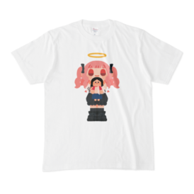 XL1家に1台の時代から 1家にかわいい1天使! いかがでしょうか? あまのこゆきミニキャラ【天使ver.】のTシャツだよ! かまってちゃん人形を抱きしめている姿 イラスト:TEAO様(@Tea_O625) ※この商品はpixivFACTORYで作られた商品です。サンプル画像は完成イメージのため、実物と異なる場合があります。