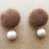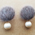 ファーカボションと一粒パールのイヤリング(バリエーション有)
