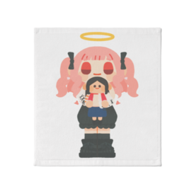 小1家に1台の時代から 1家にかわいい1天使! いかがでしょうか? あまのこゆきミニキャラ【天使ver.】のタオルハンカチだよ! かまってちゃん人形を抱きしめている姿 イラスト:TEAO様(@Tea_O625) ※この商品はpixivFACTORYで作られた商品です。サンプル画像は完成イメージのため、実物と異なる場合があります。