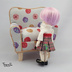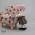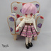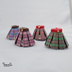 オリジナルプリントを使用したボックスプリーツのスカートです。 プリーツのかげひだそれぞれに色々な表情のねこがいます。 居ないように見えるところも、よーくみると隠れてます。 ウエストは、赤・緑はベロアリボンを使用し、 青・ピンクはスエードリボンを使用して ベルトっぽく見せています。 後ろメカニカルファスナー留めです。 中央には金色の星型ボタンを飾りに使っています。 ウエストは約8cm。 丈は、約4cm。 ミキマキちゃん・オビツ11向けです。初代リカちゃんにも着用は可能ですがかなりきわどいです。