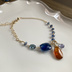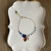 🐉カラー ダンデのブレスレットを作ってからずっと作ってみたかったキバナバージョン。 ようやく理想の石が見つかりました! 意味は、獰猛な青。 キバナのユニフォームカラーをベースにお作りしました。 メインの紺青の石はワイルドさを見せるオリオンブルーのカイヤナイト。 チェーンには同色のカイヤナイトを連ね、メインに使用しているカイヤナイトはBleu magnifique.より濃い青色のものを選び、よりネイビーを印象付けるお作りにしています。 研ぎ澄まされた技をイメージしたロンドンブルーと、不思議な色合いが妖しさを醸し出すアイオライト。 そしてキバナのユニフォームの特徴的なオレンジは、大粒のオレンジカイヤナイト添えました。 オレンジとネイビーのアクセサリーなんてキバナと出会わなければ作っていなかっただろうし、いつも おしゃれな配色だなぁと感服しています🐉笑 ここにココアブラウンの肌に、蛍光するブルーグリーンの瞳。濡羽の髪色なんて。はぁほんとおしゃれ…。 色の洪水で いくら作っても飽きません。 目に触れるアクセサリーなので、目に入ったときの楽しさを大事にお作りしました。 エンドパーツにこっそりとダンデの色(イエロー)を潜ませています👑🤫 ブレスレットがひっくり返っても楽しめますように。 ※ 2点目以降のご注文でお届けするものは写真と同ロットの石を使ってお作りします。 そのためカイヤナイトやグランディディエの、色の入り方や、石のカットなどはお写真と異なる場合がございます。 ご了承ください。 使用石: カイヤナイト ロンドンブルートパーズ ブルージルコン グランディディエライト スカイブルートパーズ マルチカラージルコン アンダリュサイト イエロージルコン👑 全長:約18㎝ 素材: 14kgf ※ハンドメイド作品ですので、工場製品ほどの強度ではありません。 優しく扱っていただきますようお願いいたします。 ※天然石には、クラック(ヒビ)や、欠け、色ムラが見られる場合がございます。 素材の魅力としてご理解いただけましたら幸いです。